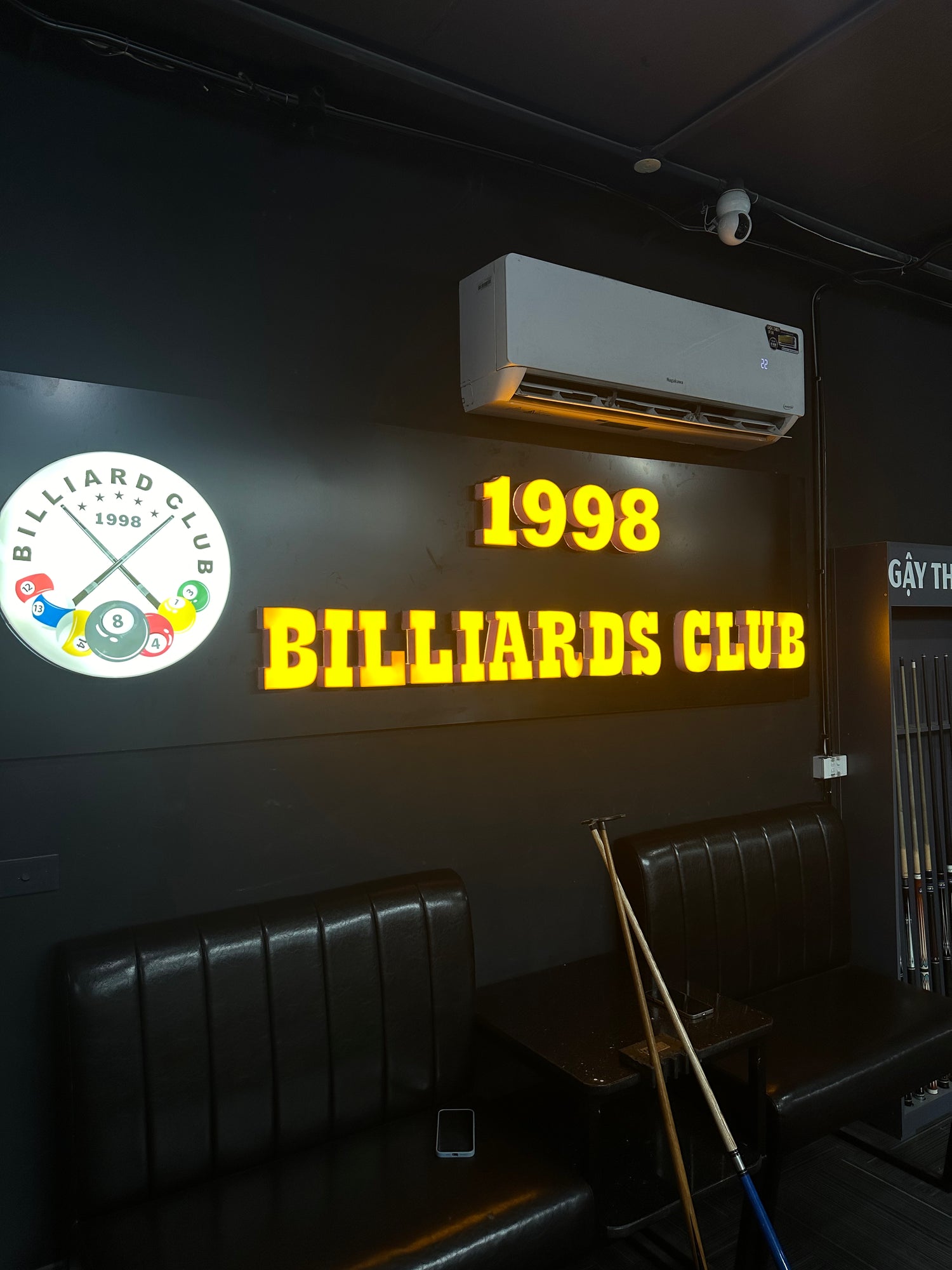 1998 Billiards là 1 quán Bi-a decor theo tone đen tinh tế, cuốn hút.